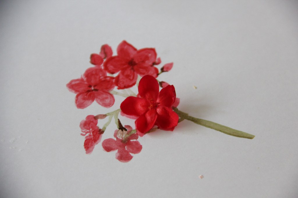 The first time I tried it, I had just put my kids to bed and had a few precious minutes to myself before my husband would get home. One of my kids had picked some flowers and put them in a glass on the table, and another child broke said glass right as I was trying to get everyone to bed. I walked over to the table to look at the damage, and thought that the flowers and broken glass were actually quite pretty, so I sat down with some printer paper, water, and Crayola watercolors, and painted some of the blossoms.